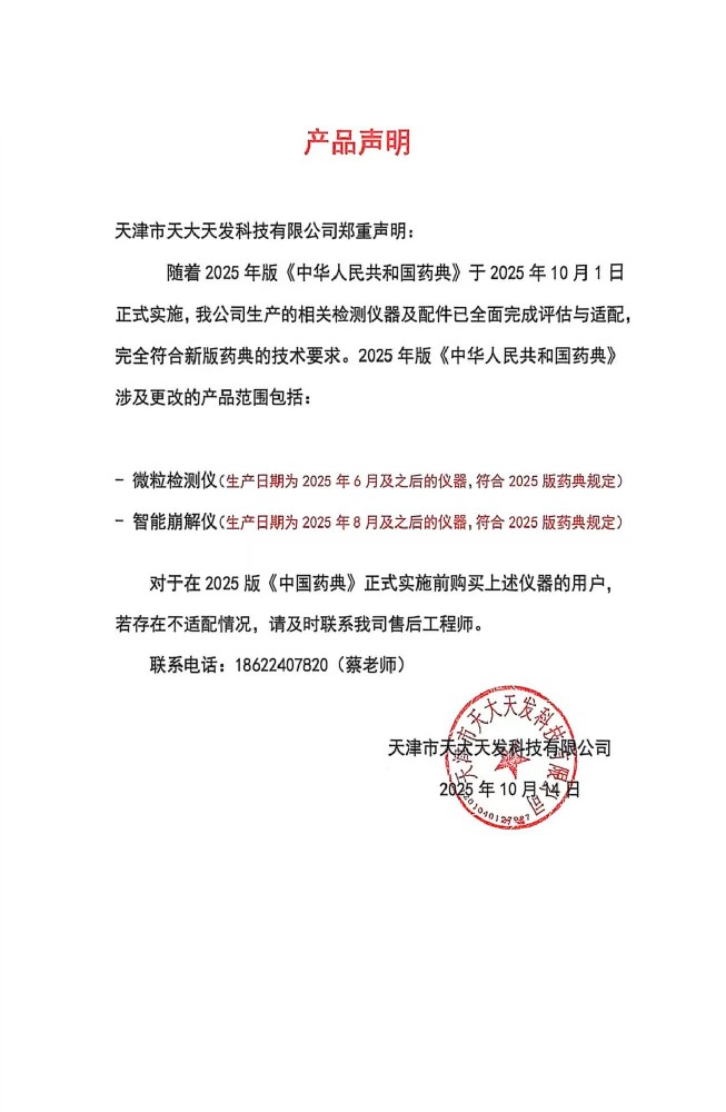 歡迎您進(jìn)入天津市天大天發(fā)科技有限公司的網(wǎng)站進(jìn)行瀏覽,首先感謝各界朋友多年來(lái)對(duì)天大天發(fā)藥品檢測(cè)儀器和分析儀器的關(guān)心與支持!